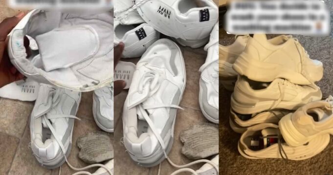 A UK-based Nigerian man expressed displeasure with the outcome of his designer sneakers after washing them in a laundry machine.