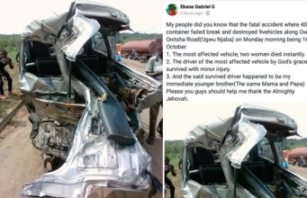 Driver Survives With Minor Injury After 40ft Container Falls On His Car And...