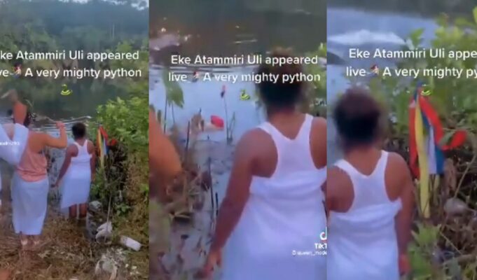 Interesting moment a python received a sacrifice at a river in Anambra state (video)