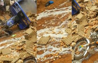 Outr@ge as “okada” man ran into a tricycle conveying crates of egg (VIDEO)