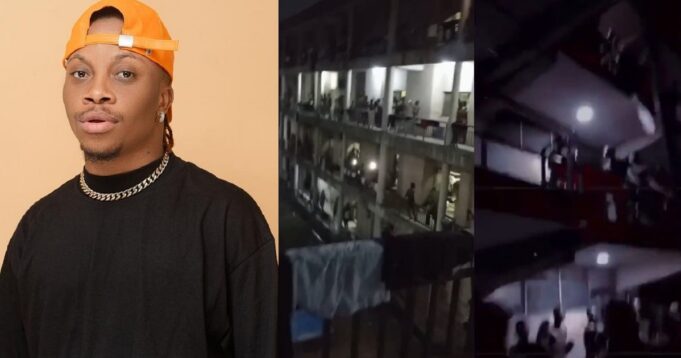 With so much energy and passion, a bunch of male hostelites, some of them shirtless, were seen jumping, cheering and chanting the singer’s name obviously after having a look at the singer’s leaked bedmatic session with a yet to be identified lady.