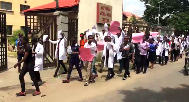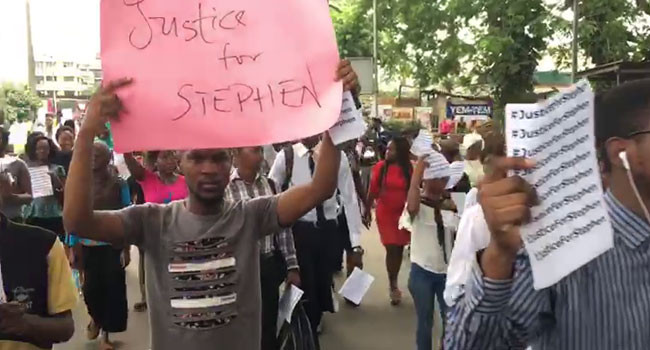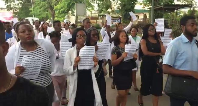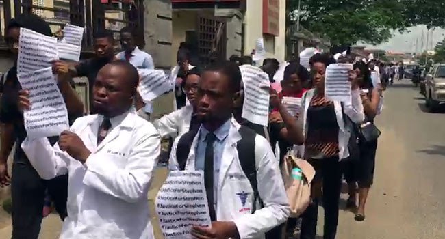Medical students of the Lagos University Teaching hospital, on Friday afternoon staged a protest over the gruesome murder of their colleague, Dr Stephen Urueye.