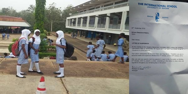 Ikhlass Olasubomi Badiru, a female student of the University of Ibadan International School, has been suspended by the school’s authorities for reportedly wearing a Hijab to school in July.