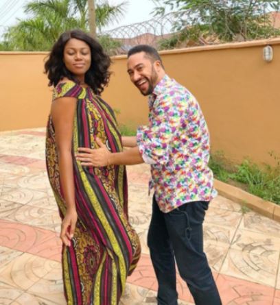 Now, new photos of one of her close friends, Majid Michel cradling the pregnant belly of his colleague, Yvonne Nelson has surfaced online.
