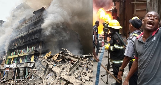 “This fire has escalated to adjoining buildings totaling seven (7) in number and now is being contained by the Emergency responders-Lagos State Fire Service and the Federal Fire Service and NPA Fire Service. Seven buildings are affected and one has collapsed.
