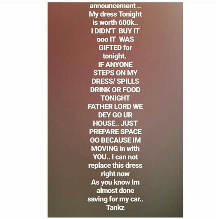 Before sharing the images, the ex-Big brother Naija housemate revealed to her followers that the dress is worth ‘N600k’ and it was gifted to her.