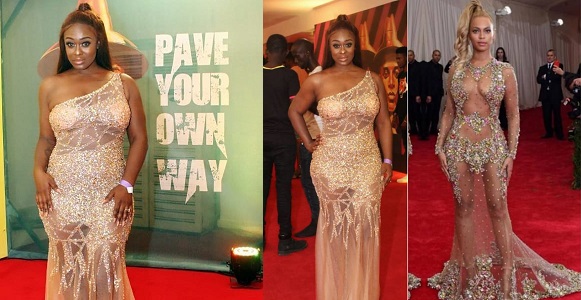 The lovely sure turned heads at the event in this golden glittery dress which she says was inspired by pop singer, Beyonce.