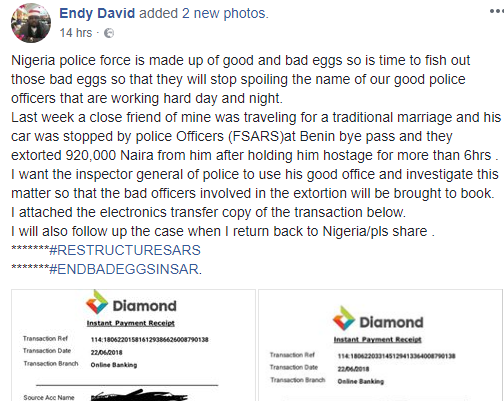 ”NIGERIA POLICE FORCE IS MADE UP OF GOOD AND BAD EGGS SO IS TIME TO FISH OUT THOSE BAD EGGS SO THAT THEY WILL STOP SPOILING THE NAME OF OUR GOOD POLICE OFFICERS THAT ARE WORKING HARD DAY AND NIGHT.