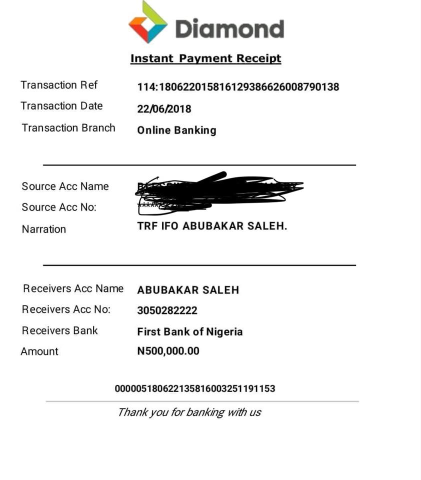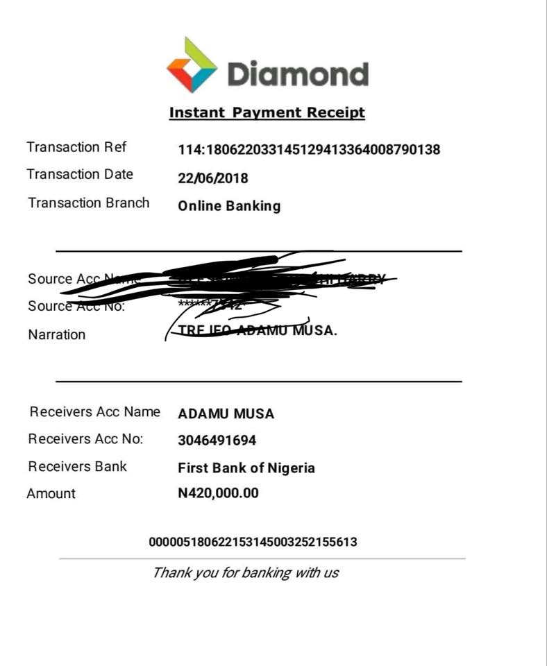 He says he will follow up the case when he returns to Nigeria and legal action will be taken. He also attached screenshots of the transaction.