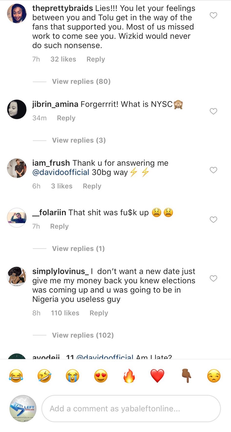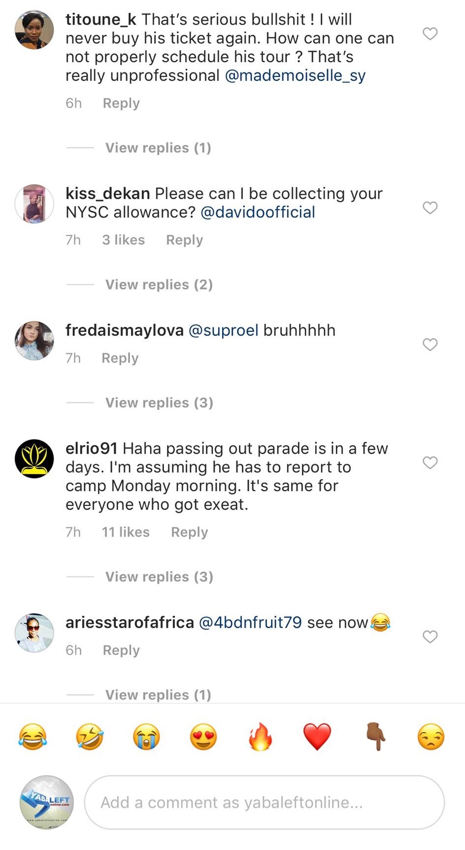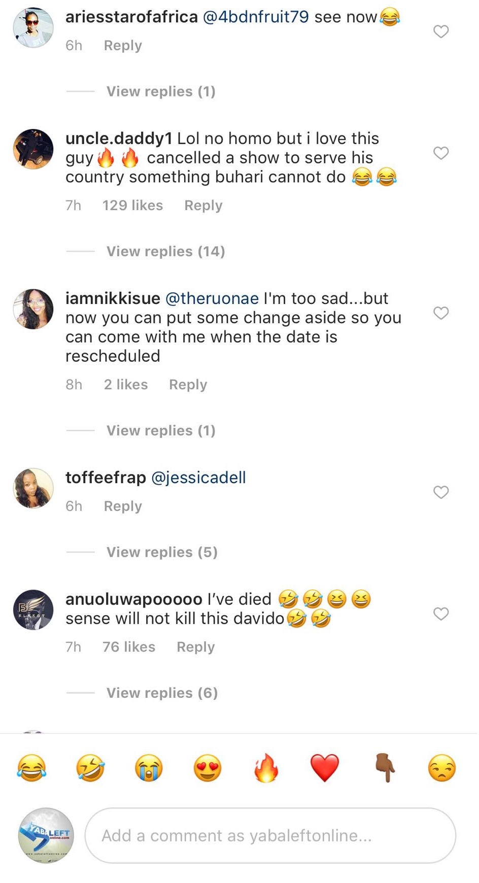 They took to his Instagram page to call out the singer. While some feel it’s because of the Osun state campaign for his Senator uncle, which is scheduled to hold from the 15th.. Others felt the NYSC excuse was a blatant lie.