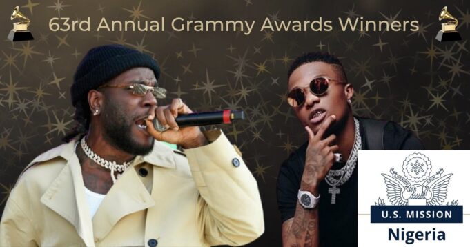 The United States (US) Mission in Nigeria joined the league of felicitators who’ve sent in their congratulatory message to the recent celebrated Nigerian entertainers; Wizkid and Burna Boy over their first Grammy win.