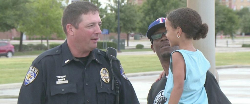 A Texas police officer had a young black girl calm down after her father was pulled over for a routine traffic stop.