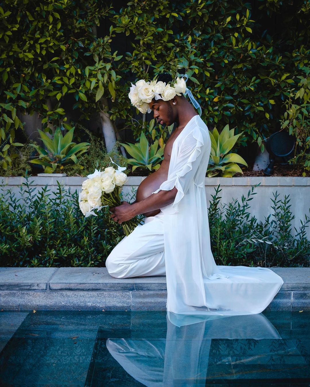 Lil Nas X shared photos from his pregnancy photoshoot which he described as his bundle of joy and wrote,