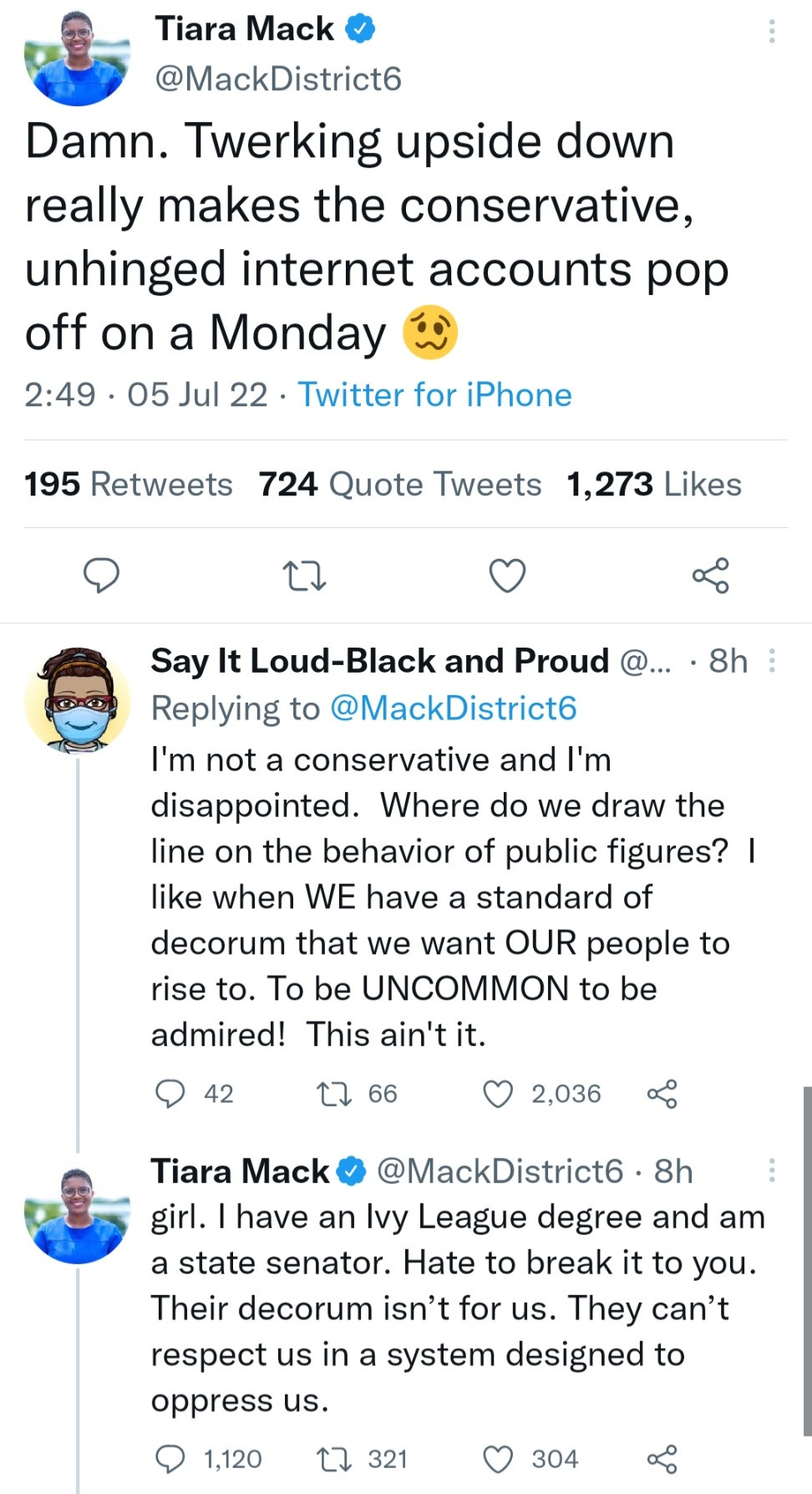 A 28-year-old Rhode Island State Senator, Tiara Mack, has responded after she came under fire for twerking in her bikini and sharing the video on TikTok.