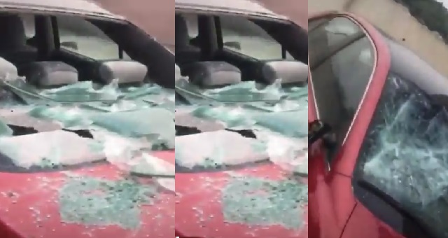 A video making the rounds on social media captured the aftermath of a valentine’s day gone wrong as a vengeful lady destroyed her ex’s newly bought car in Ajah, Lagos.