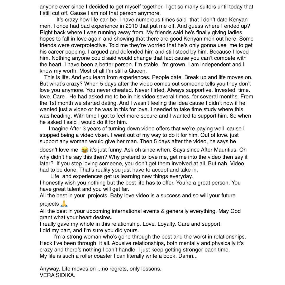 Kenyan socialite, Vera Sidika has announced the breakup with her musician boyfriend, Otile Brown. The video vixen has also deleted all the loved-up pictures of the both of them from social media