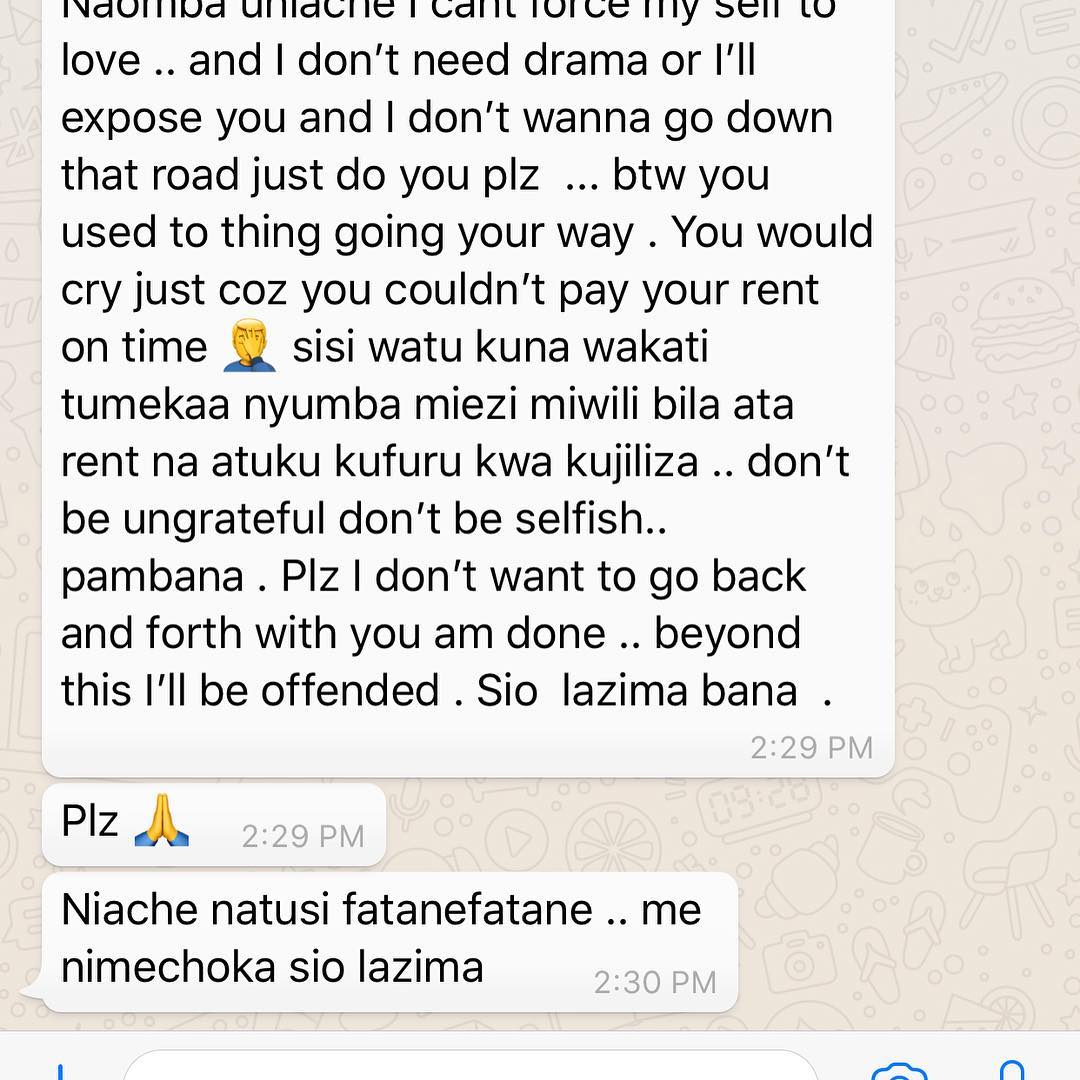 The curvy model took to Instagram to reveal that they are no longer together just two days after they reconciled after their initial break-up. She also shared screenshots of her conversation with Otile, where she blasted him for asking her for money to buy a Mercedes.