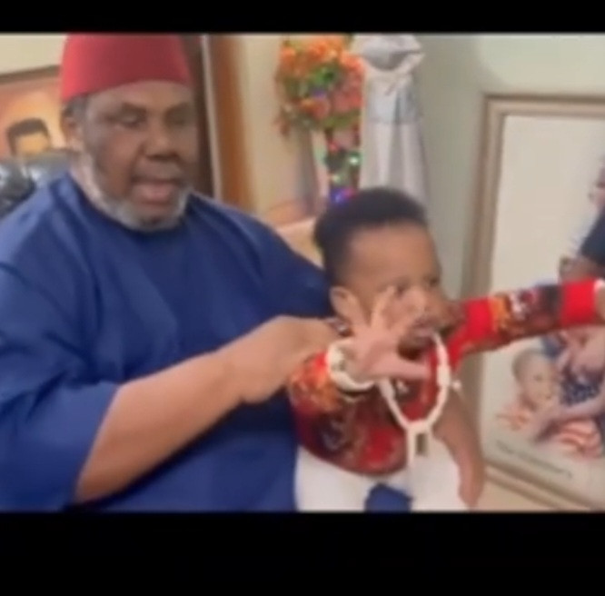Veteran Nollywood actor, Pete Edochie was filmed praying for his grandson, Star Dike Yul Edochie on his birthday recently.