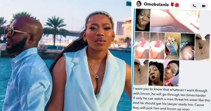In new photos and videos that have hit the internet, Bolanle’s battered face can be seen and it’s alleged that Lincoln is responsible for the beating and injuries.