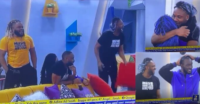 Here’s the moment Pere and Angel walked back into the Big Brother Naija House to the amusement of WhiteMoney, Emmanuel, Cross and LiquoRose.