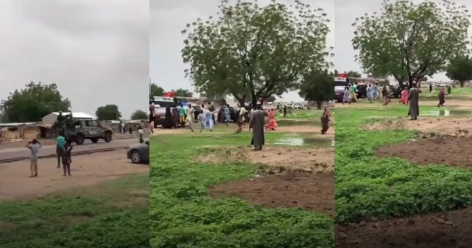 The video was being casually made to show the gallant troops in their military vans making their way into Borno through Jakana town as onlookers and residents of the area watched in amusement… The spectator who made the video is heard saying they’re army reinforcements going to Borno to fight Boko Haram insurgents.