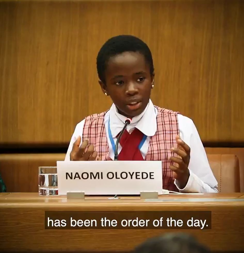 Naomi Oloyede, an 11-year-old Nigerian, has addressed the United Nations Office on Drugs and Crime (UNODC) international conference in Vienna.