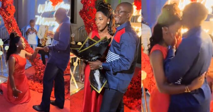 A video of a lady kneeling to receive her engagement ring from her partner has sparked mixed reactions online.