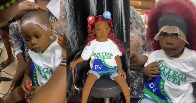 Nigerians’ berates an online hairstylist as video of her installing a lace frontal wig on a little girl goes viral, causing many to lament over the widespread of poor parenting in present age.