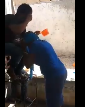 A rather surprising and shocking video shared online shows a supposed pastor, washing his legs on the head of his members while letting the water drip over them to “anoint” them.