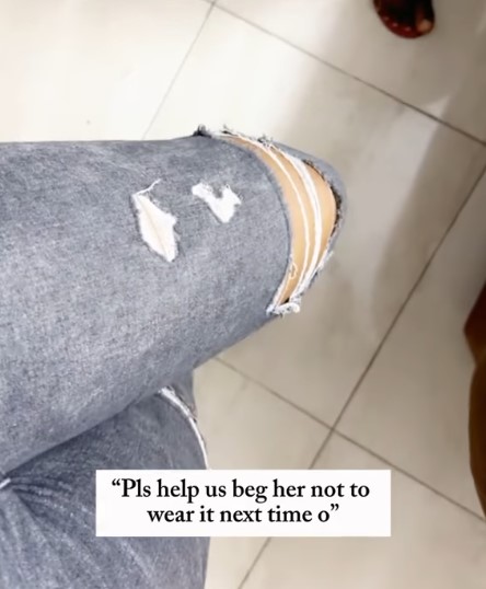In the video shared on Instagram, her mum and aunt’s voice could be heard lamenting over the ripped jeans. The two women complained that the jeans were not appropriate as it was revealing her thighs.