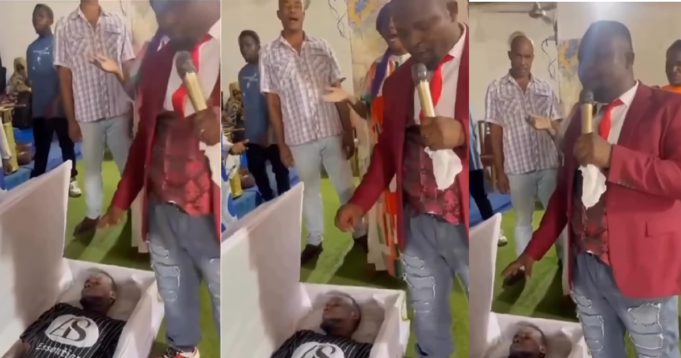 A clip that has been circulating on the internet has netizens in disbelief, as it shows a Nigerian pastor allegedly raising a man from the dead.