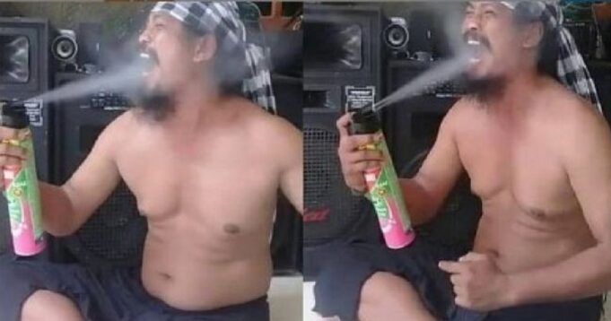 A man, identified as Ki Galang Pamungkas, who went viral after he sprayed insecticide into his mouth has died.