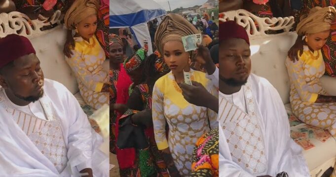 The video has triggered negative criticisms online with netizens left open-mouthed at the social distance between the couple and the naira denomination sprayed on them.