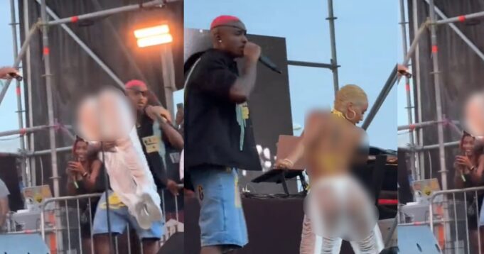 Ruger came on stage carrying a lady, who wore a sexually attractive attire, causing an uproar among the audience. After the unexcepted scene, the lady began dancing showcasing erotic dance steps while he performed his hit song.