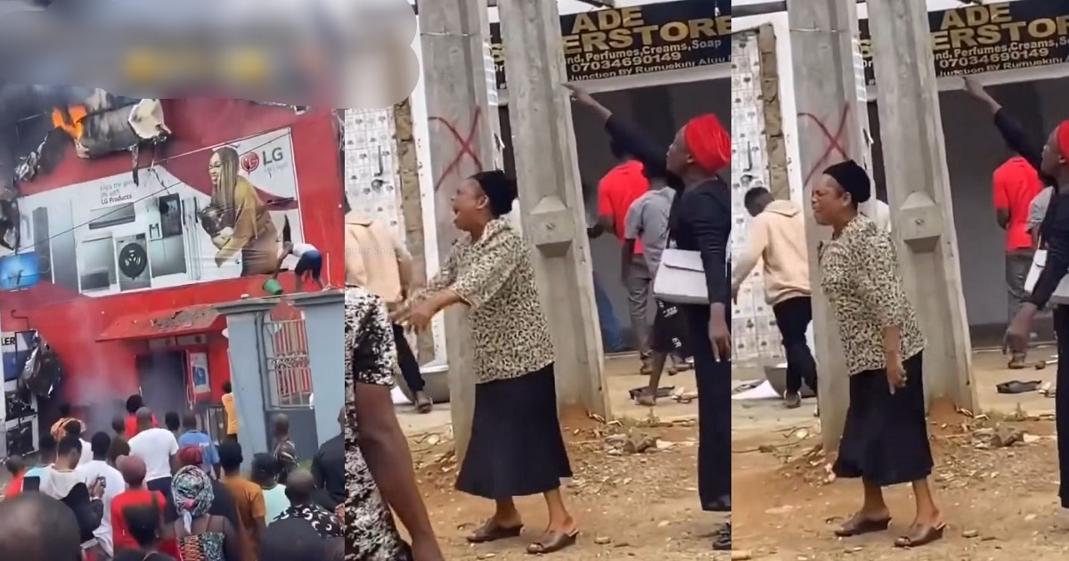 The women, undeterred by the raging fire, could be seen standing beside the burning structure, praying fervently and speaking in tongues, calling upon heavenly forces to quench the fire.