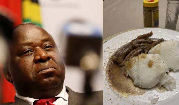 “Na slayqueen doings” – Reactions as South African lawmaker, Tito Mboweni shows off food his niece prepared for him
