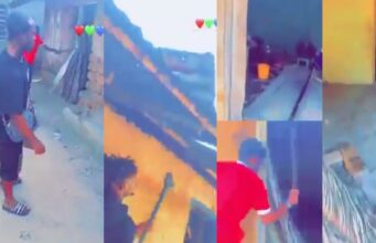 Yahoo boys destroys their colleague’s mother’s house after he absconded with N30m they...