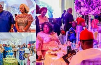 Billionaire businessman, Emmanuel Iwuanyanwu and his 30-year-old wife, Frances, host friends and family...