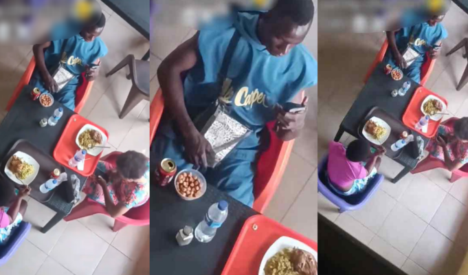 Man buys fried rice and chicken for his date and her friend, gets chin chin for himself (WATCH)