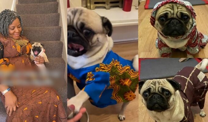 “Owambe ready” – Hilarious reactions as Nigerian lady shares video of her dog rocking Ankara outfits (Video)