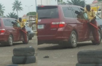 LASTMA Officer plead for mercy after his hand was locked by driver when...