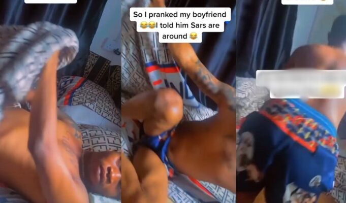 How young man reacted after his girlfriend pranked him about SARS being in his compound (Video)
