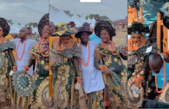 Viral Video Sparks Controversy As Nigerian Bride Avoids First Kiss With Her Husband (WATCH)