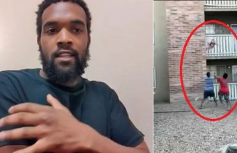 Brave moment a man ran to catch a baby thrown from a third-floor...