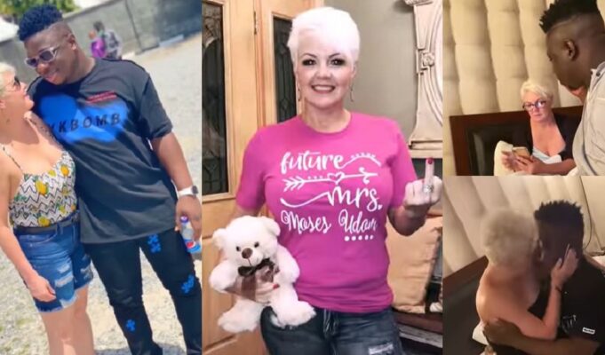 Young Nigerian man proudly shows off his beautiful older white lover (video)