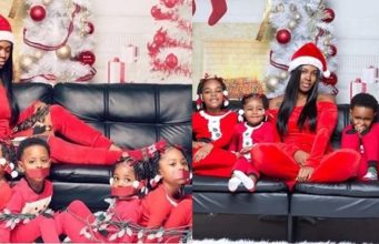 Mum ties up her Four kids in viral Christmas photos