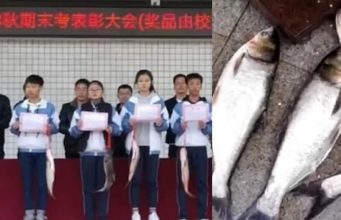 Chinese school awards 30 best students with fresh fish for doing well in...