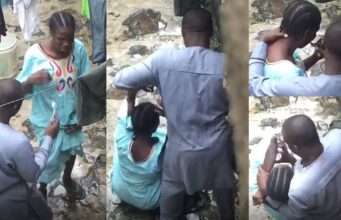 Nigerian man caught on camera assaulting his wife while forcefully brushing her teeth...