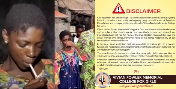 The disclaimer was in light of a certain lady who gave her name as Lizzy after being picked up by Freedom Foundation for rehabilitation – she told Pastor Tony Rapu’s team how she became addicted to cocaine after her ex-boyfriend began mixing it with her weed.
