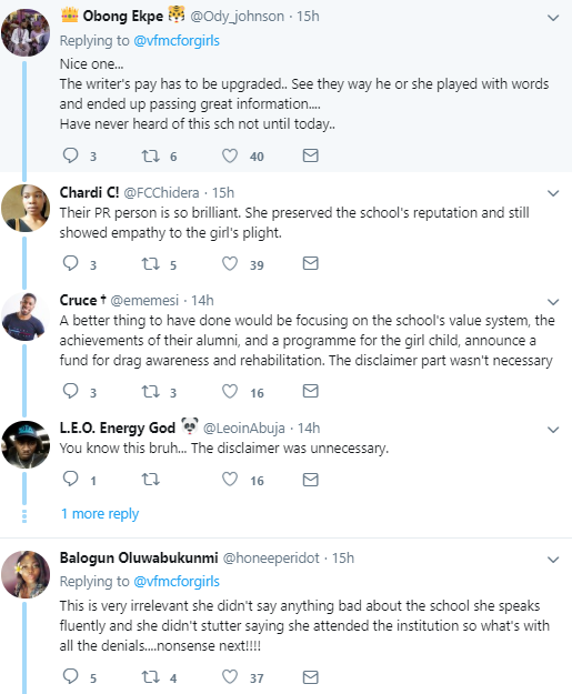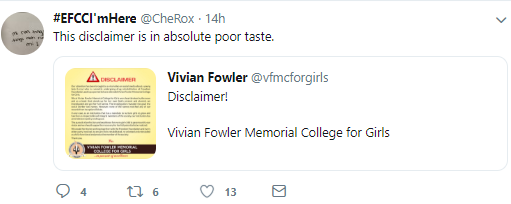 Vivian Fowler Memorial College for Girls took to Twitter to issue a disclaimer which some users of the app have found to be in poor taste.